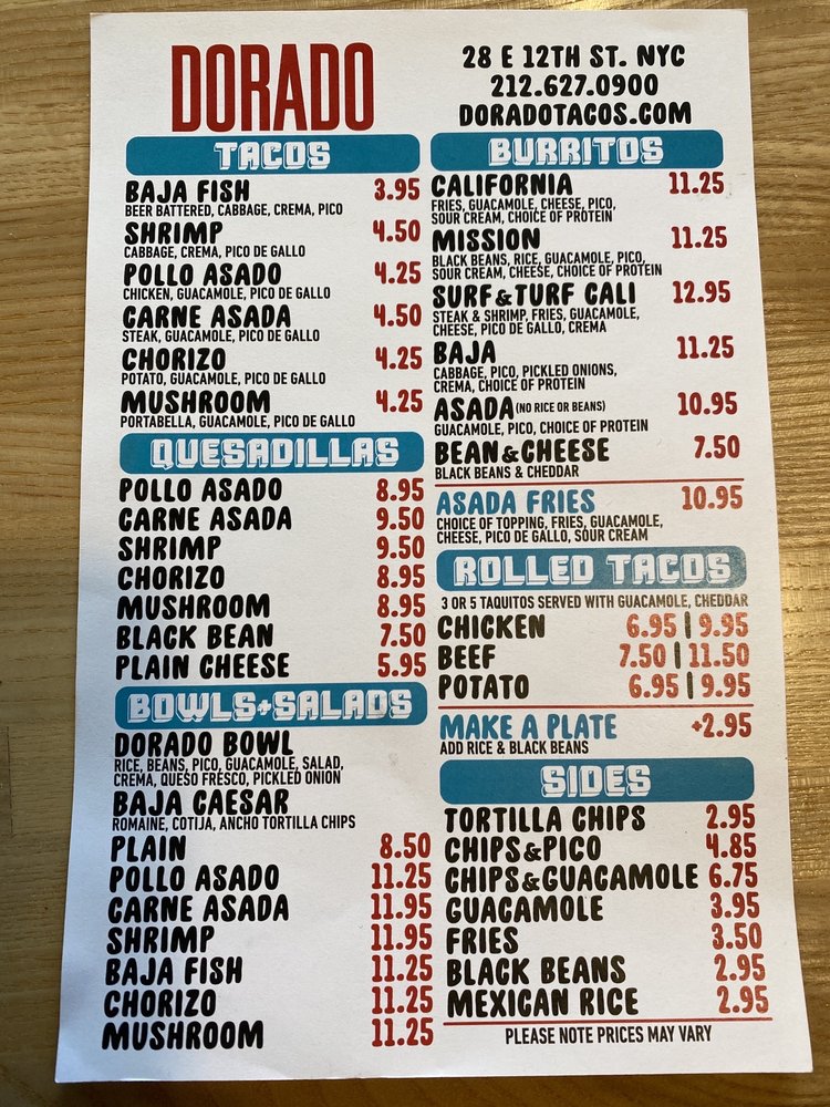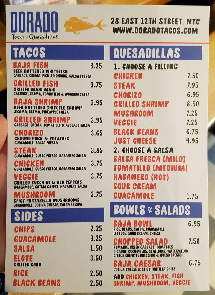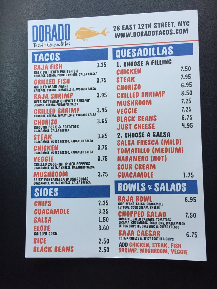 DORADO Tacos & Quesadillas Menu (Update 2025)